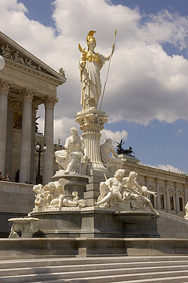 Az Osztrák Köztársasági Parlament székhelye egy óriási, benyomást keltö épület a bécsi Ringstrassén.
